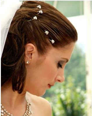 Here’s a hairdo that will definitely seem interesting and simple to make in the same time. This one involves taking the hair and placing it on the back side of your head without making a loop or a pony tail, leave it just how it is, just place some good looking hair pins there and attach the veil as well.
