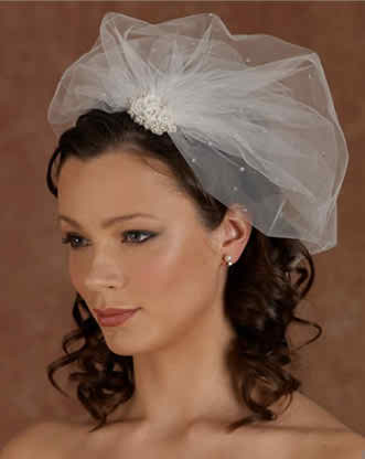 Another interesting and modern bridal hair accessory that most of the brides apply for: the birdcage veil that can be placed on one side of the face and then turned back as to uncover your face…. Such a type of bridal veil can be made of fabric that imitates net or of semi transparent type. Also, the attachments to such a bridal veil are definitely interesting and you can apply for glittery stones, shells or even feathers. You make the pick!