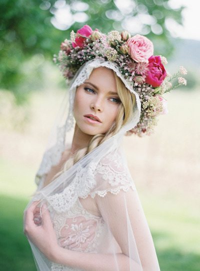 Top off your wedding look with a beautiful and very bridal flower crown. Add a bit of bohemian to your big day with ease while making a bold statement full of delicate femininity.