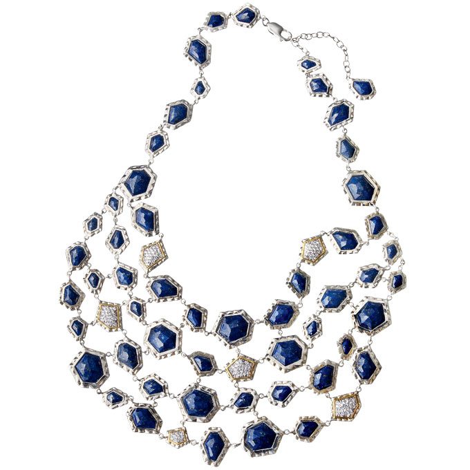 There’s also an option of going with a classic topaz or aquamarine stone to accent your decolletage.