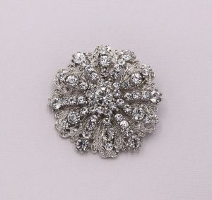 This is another design that could easily be used in a variety of ways. Its shape is perfect to clip the back of gowns, accent bridal bouquets, or even use to fasten a veil to a bride’s head for the day. It’s versatile in use and in style!