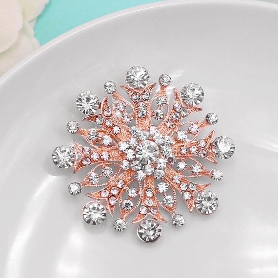 Rose Gold Rhinestone Bridal Brooch