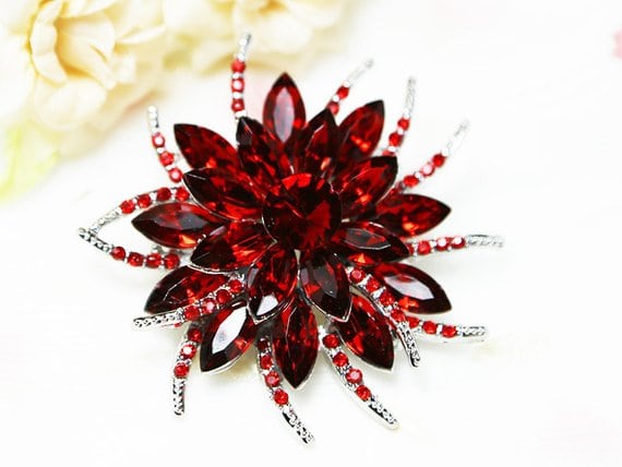 Red Crystal Flower Bridal Brooch