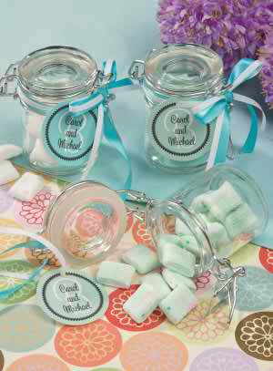 The bridal shower favor ideas that we want to start with consist of jars in which you can place jelly pieces or bonbons. Of course, you want to recall the girls attending your bridal shower that they were there and you can also add to this jar a nice looking card with a bow detail and all these will make your guest smile! Not only is she going to keep the jar, but also she’s going to eat the things in it with pleasure.