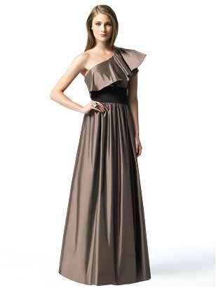 CreditStill in the long dresses area, our next idea for your bridesmaids would be a satin, one shoulder, full length dress, harmoniously accentuated with a black belt, whose purpose would be to beautifully emphasize your waist line. Actually, one shoulder dresses seem to be very popular nowadays, thus making a great choice for your best friends.