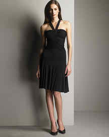 We start with a crisscross black dress. The X is around the neck area and it ends in the back with some buttons. It is ideal for the skinny bridesmaids as the crisscross hides the collar bones very well. This model ends in a back zipper and its fabric is silk. The length is also very convenient and it goes well on all body shapes.