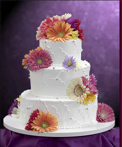 Adorn the wedding cake with the bridal bouquet, asking the confectioner to create sugar miniatures of the flowers for the bridal bouquet. For modern wedding use dahlias, but for one with traditional inspirations you can apply for sunflowers.