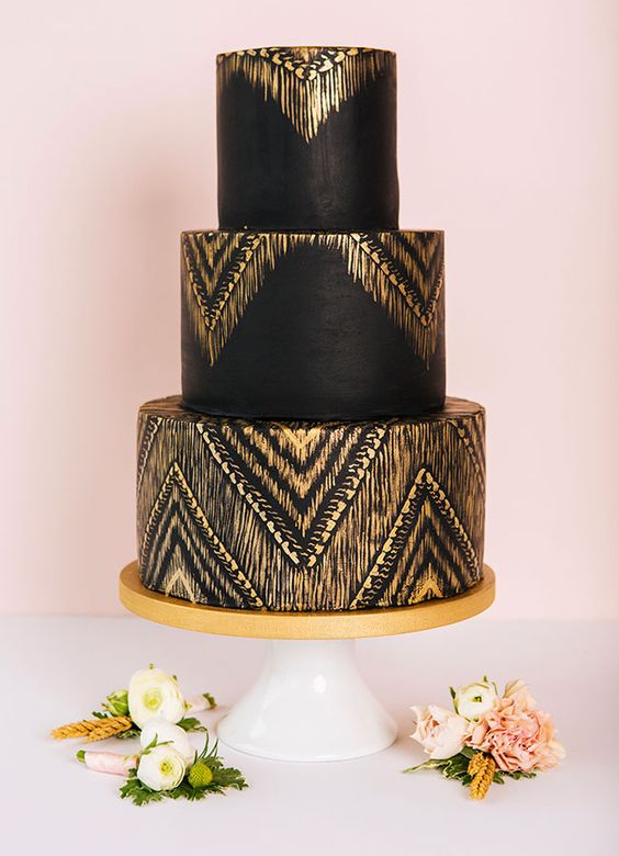 Gold, blush and black can make a gorgeous color scheme for your wedding and look at what your cake can turn out to be!