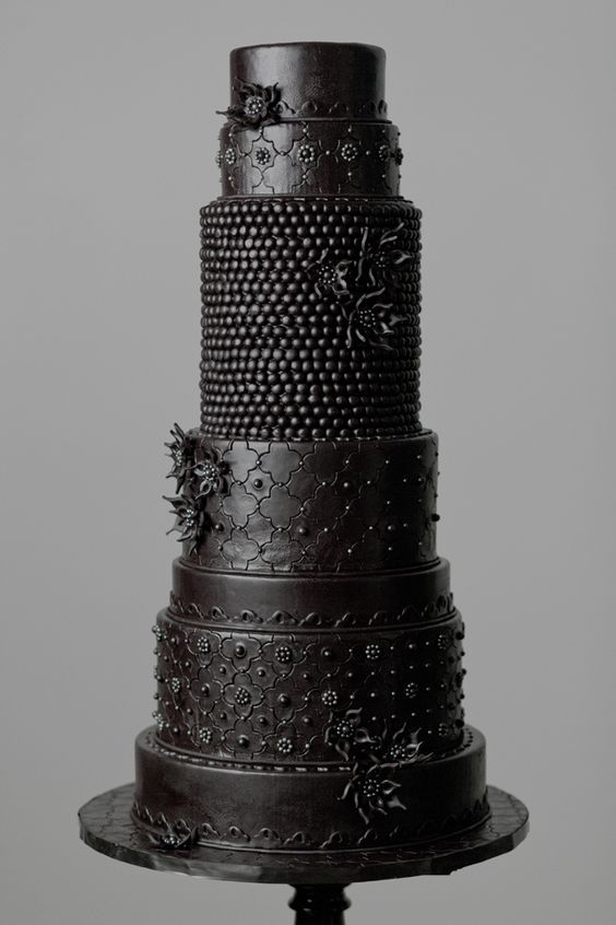And this cake, dressed in all black and full of texture looks as if it’s made of edible leather!