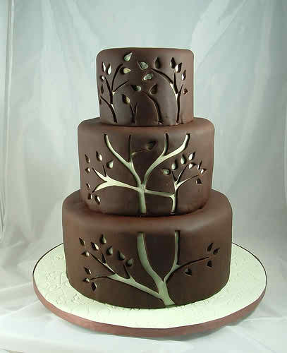 The first cake we want to mention about is made in white and black and it’s made of course of white and black chocolate. The interior of this cake is white and its exterior is entirely black with nice engravings on it: it’s a tree that is made in fine cuts and in these cuts you can observe the cake’s white interior, inside the leaves and branches….
