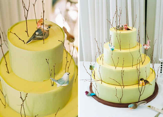 Being spring we think that this cake is especially designed for a wedding that takes place in this season! We’re speaking about a four layered cake in yellow tone and with nice birds standing on every layer here and there.