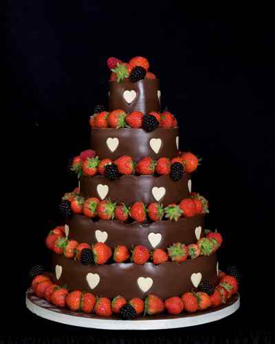 This next wedding cake looks more than modern: it’s delicious! It is made entirely of black chocolate and here and there you can admire white hearts that surround every layer. This cake is composed of five layers and around every one there is a ring formed by nice looking strawberries and on the last layer there’s also a bunch of strawberries instead of the classical cake top.