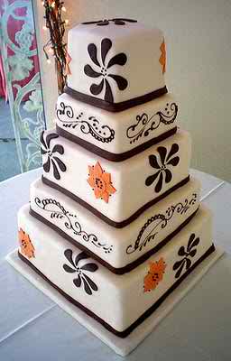 Black and white seems to be inspiring every time! A black and white cake made with lines can be very delicious and creates a wonderful view also! You can have those lines or stripes in any position you like and also place at the top of every layer a necklace made put of sweet white flowers that have some dots in their center!