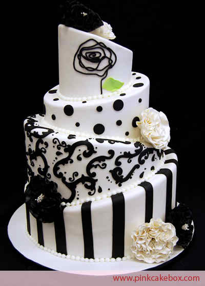 It is well known that this classy contrast does its share of magic on formal weddings, but this does not mean that it must be kept only for the dressing code. The wedding cake is an important focal point of the big event and it must be treated with the utmost attention. Let us weigh the options a little bit and come up with a few good reasons to make you say a black and white wedding cake is definitely what you will go for.