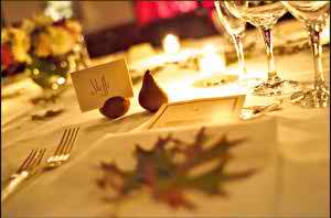 Having real pumpkins on the tables may sound a funny idea for some! Just think how many pies your guest can make from a king size pumpkin! Cut a small part from the pumpkin`s branch and place a card with the name of the guests! They`ll remain perplex seeing real pumpkins on your table!