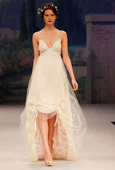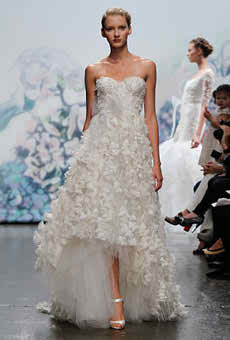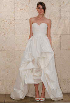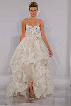 Because you will have a 2012 wedding, you are obviously interested in this year wedding dress trends. And this is normal, because you want your bridal look to be modern, elegant and sophisticated. Maybe some women will be glad to hear it, mean while some will be confused, but the most popular wedding dress trend this year is the high low hemline.
