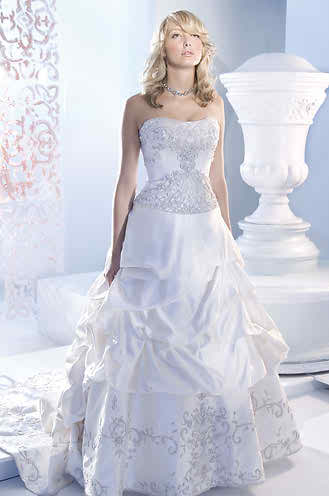 This one has a tight bodice on the upper side and the skier is wide and made of multiple layers of ruffled fabric. You’re going to observe ion the front side an area, a well delimited area that uncovers the legs and offers you an air of sensuality! Such a wedding dress can be definitely placed in the category of extravagant wedding dresses and you’re going to be noticed for sure with it on!