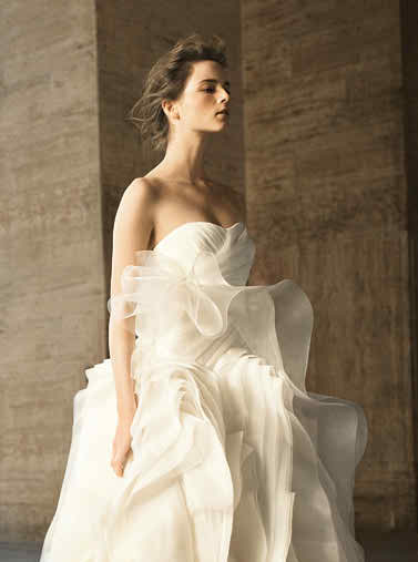 Looking for an even special model of Amsale Aberra wedding dress? Well, we were thinking oh a strapless wedding dress that is made only with ruffles on its entire surface!
