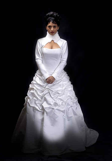 Here’s another Ana Hernandez wedding dress which we have to share with you. It consists of a strapless wedding dress that is realized with a deep cleavage and that emphasizes the breasts in a gorgeous way. The skirt is made in A line, with a short train in the back side and only of ruffles. Also, let’s add that you’re going to observe an attachment added to this wedding dress, the bolero that is made with long sleeves and a tall collar. All of these go greatly together and we’re sure that you’re going to find these elements pretty useful when it comes to elements that can be applied for in the big day!