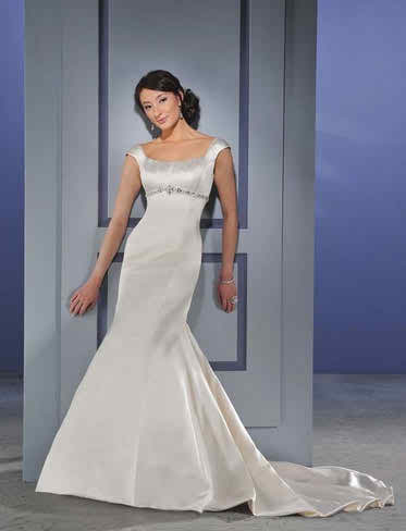It has two straps that help the bust be sustained and let’s also mention that the boat neckline is indeed one that will make you look gorgeous. Underneath the breasts there’s a well delimited area highlighted by the embroidery added there and it’s sure going to make you look thinner and this creates an interesting visual impact. The wedding dress continues in the back side with a train and this is what makes the dress look even more interesting and you taller!