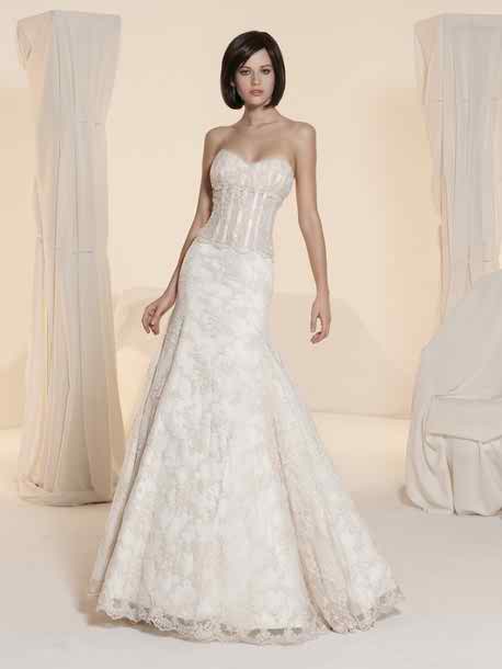 We start with this first example of designer wedding dress that is in fact a sleeveless wedding dress with nice details on it and which is a blending of A-style with mermaid style.