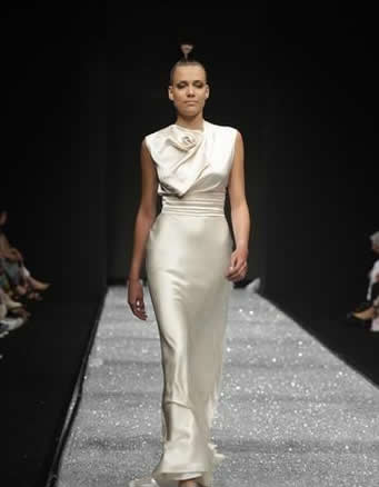 Sometimes a daring bridal gown can be realized in a really simple manner, maybe on the lines of the body, really tight and of silky fabric as to make you have a look similar to that of a Greek statue. The model can be dazzling in the moment in which this simple piece has added on it a special looking neckline, one that starts from one side of the chest and it goes on the opposite shoulder.