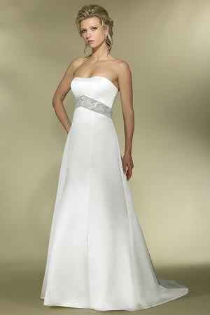 So, an A line bridal gown with sweetheart neckline and designed with a simple skirt that is continued with a short train in the back side can seem a good starting point for an informal bridal gown. The waistline can be emphasized easily through the use of a silvery tone waistline.