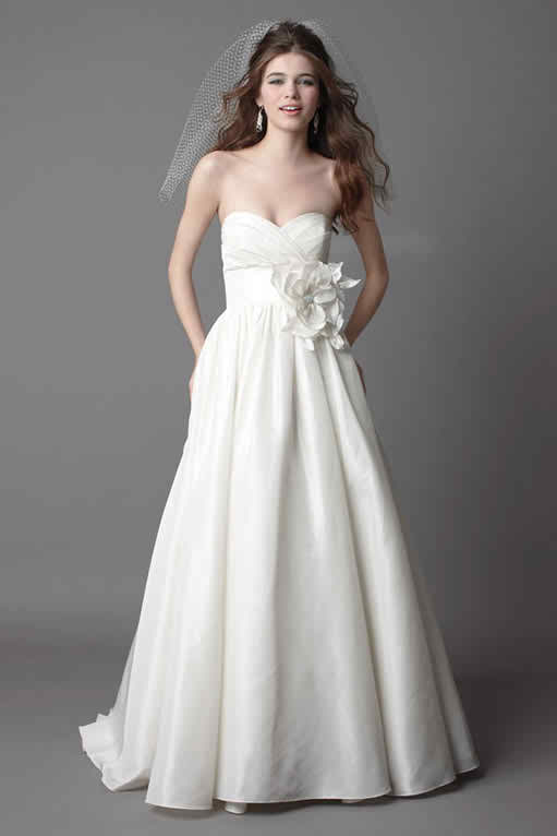 CreditIf you need some ideas on how to use flowers on your wedding dress, we have some tips for you that could prove to be quite helpful: you may have a belt made of beautiful flowers that you could place at your waist. Also, it is very popular for brides to have a flower at their shoulder, when they wear a one shoulder wedding dress. Not to mention that your look will be entirely distinguished once you will place such natural and extremely beautiful details near your chest area. So, you will have to place these beautiful details near the spots you would like to put emphasis on. It will be such a great idea that everyone will appreciate and admire.