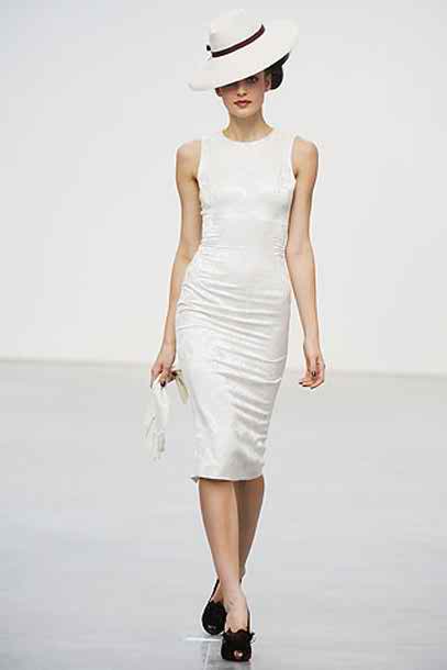 The other model that we wanted to share with you is also really interesting and it’s designed in such a manner that it recalls of the vintage periods…. So, this one is tight on the body, it’s made in white tone and you can observe slight embroidery on its surface. There are these details that can be observed on the surface of this dress and all cope into creating a marvelous piece that we’re sure you’re going to love applying for in the big day. Did we mention that this dress is tea length and that you’re going to look just gorgeous in it? Also, let’s add that this dress is signed L’Wren Scott and that you’re going to fall in love with it immediately.
