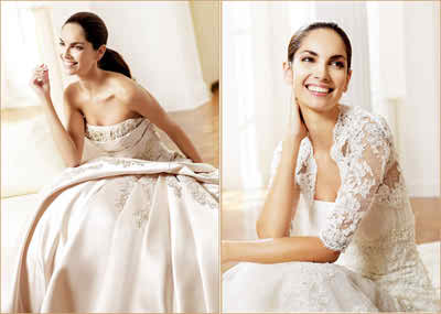The fabrics from which these La Sposa strapless wedding dresses are made of are definitely interesting and can be encountered at the highest level of quality! On the upper side of the right wedding dress you can observe a lace bolero that is made with flower embroidery and these are details to die for! It’s not the fact that they can’t be encountered elsewhere, it’s the way in which the elements cope one with the other!