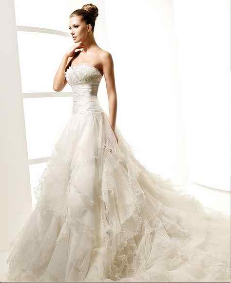Another wedding dress that is going to offer you a special look is certainly this strapless wedding dress realized accordingly to the models of princess wedding dresses. This one has a really tight bodice, one that is going to emphasize the beauty of your feminine shapes. Another thing that we want to add is related to the ruffled details that can be encountered on the surface of the bust.