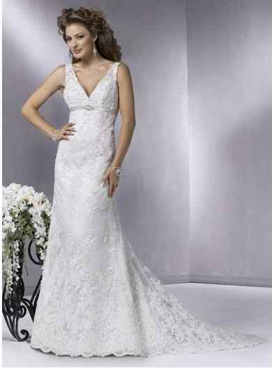 The last suggestion of lace wedding dress that we want to mention about is made entirely of embroidered satin with lace on. It’s gorgeous to be worn in an open air wedding from our perspective. Also, it’s sleeveless and it has a sweetheart neckline that highlights the bust in a very interesting manner.