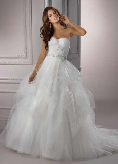 CreditShe has many white models in mind, presenting simple and adorable designs. Thus, from this point of view, Maggie Sottero 2012 wedding dress collection is something that will make you feel at your ease and elegant.