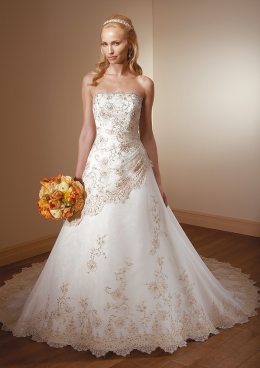 Another Mori Lee wedding dress that we need to share with you is definitely this one! We were thinking of a strapless wedding dress made with straight neckline and in A – style. Also, you can observe numerous embroidered details on the surface of the bodice and on the skirt as well. The wedding dress is continued in the back side with a long train and you can be sure that the final visual effect is indeed stunning.