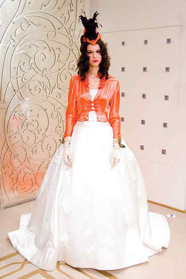You can adopt the white for your wedding dress and in order to apply for a touch of color you can add a jacket over the gown and make sure that it is in an orange tone. You can also apply for a pair of gloves and the imagery is completed.