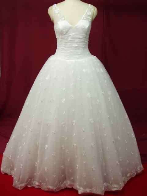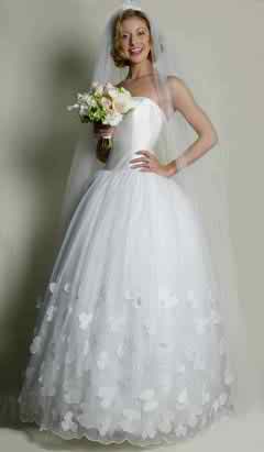 To this wedding dress we have to add the veil which is made of a thin fabric and transparent and let’s also add that it’s down to the ground….