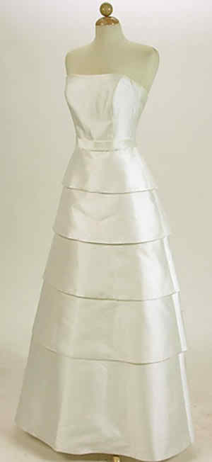Here’s a Richard Glasgow wedding dress which isn’t that simple. We’re speaking about a strapless wedding dress that has straight neckline and it’s designed with a corset and a ruffled skirt. The skirt is made in multiple thin layers of fabric and in the lower side you can observe numerous applications and details, which make the wedding dress extra interesting.