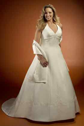 Here’s another great example of plus size Venus wedding dress and we hope that you enjoyed it as much as you did when you found such a model in our previous topics. This dress has a V cleavage and halter straps. Between the breasts there’s a shiny and silvery detail made of embroidery. The skirt is very wide and it looks simply delicious on your body, because it’s kind of puffed and it has here and there some nice looking embroidery made in the same manner as the detail on the chest.