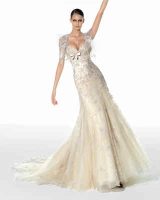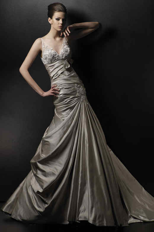 The next model that we thought to present is indeed breathtaking and you have to agree with us totally! This UK wedding dress goes really great on the body and it highlights all your beautiful parts, like the breasts and the wonderful waist line and thighs. This cleavage is generous and it shows your breasts in a very pleasant manner. In the right side of the dress there’s a bow detail that offers an extra sensation of preciousness to this great looking gown.