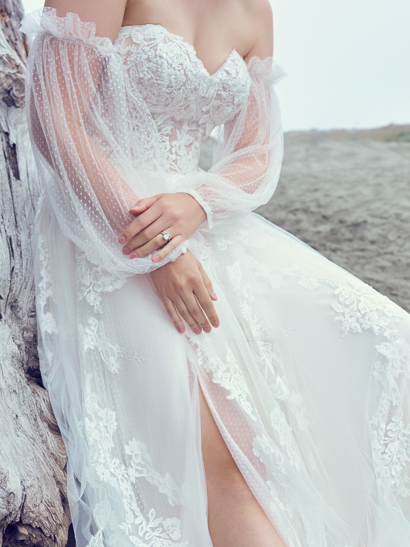 Maggie Sottero has some beautiful detachable sleeves. You can channel your inner Bridgerton soul with detachable bishop sleeves. And, of course, there are romantic lace sleeves in various lengths for a more traditional look.