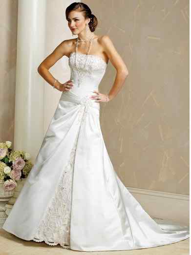 We start with a sleeveless wedding dress that has only nice details about it. This one has a straight neckline and really tight bodice, which will definitely make your body look interesting and great looking in the same time. So, we’re speaking about the straight neckline that will highlight your gorgeous breasts.