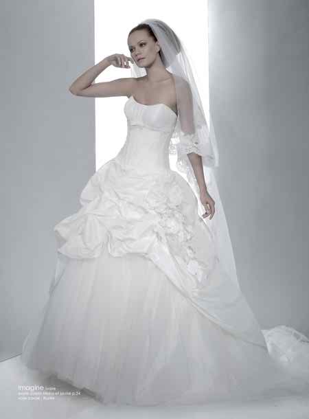 On the superior side of the skirt you can observe ruffled details and the fact that the fabric used isn’t semi transparent. Also, you can apply for wearing a veil to this dress, a veil with fine embroidery on.