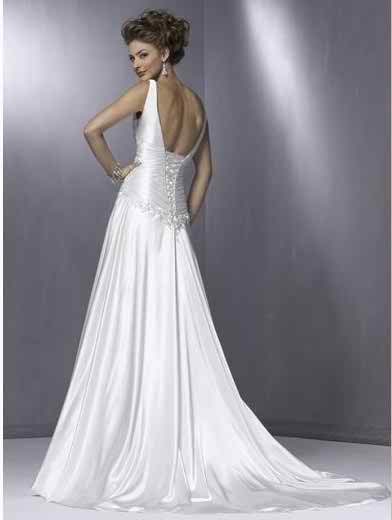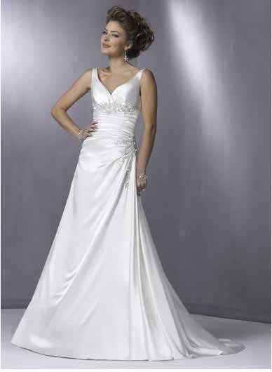 We start with mentioning some details about the first wedding dress. This one is conceived in a very interesting manner, in A-line it has a V neckline and not that thin straps.