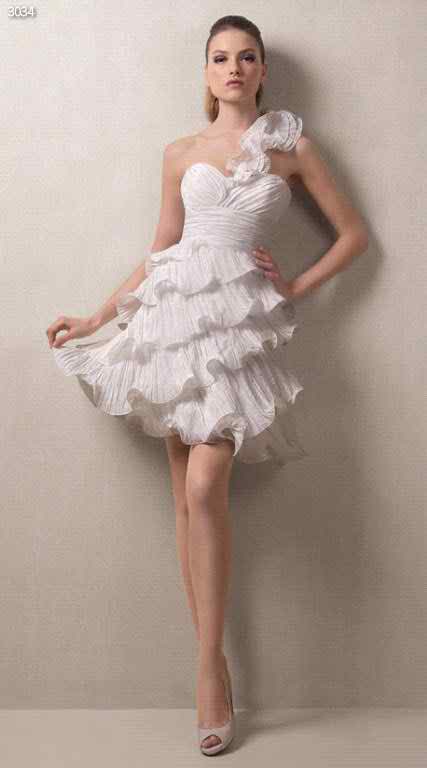 The next White One wedding dress that we want to share with you is a short wedding dress that is made accordingly to the retro models of wedding dresses. This one has a sweetheart neckline and the particular neckline, which is realized in a similar manner as the previous one.