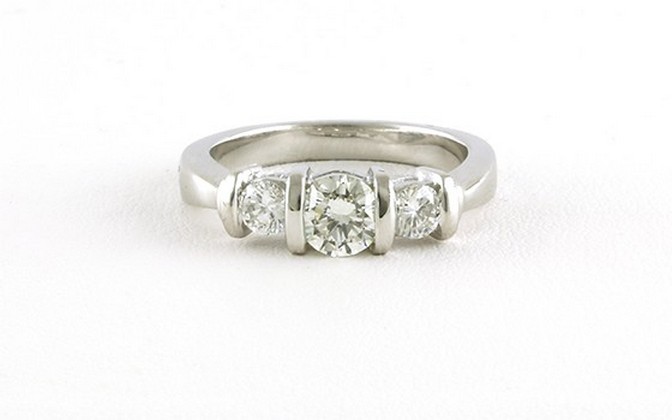 Another popular setting is called a bar setting. This option holds the stones firmly in place through thin vertical bars of metal, allowing light to interact with the stone. This type of setting is used most often with 3-stone engagement rings or wedding bands.