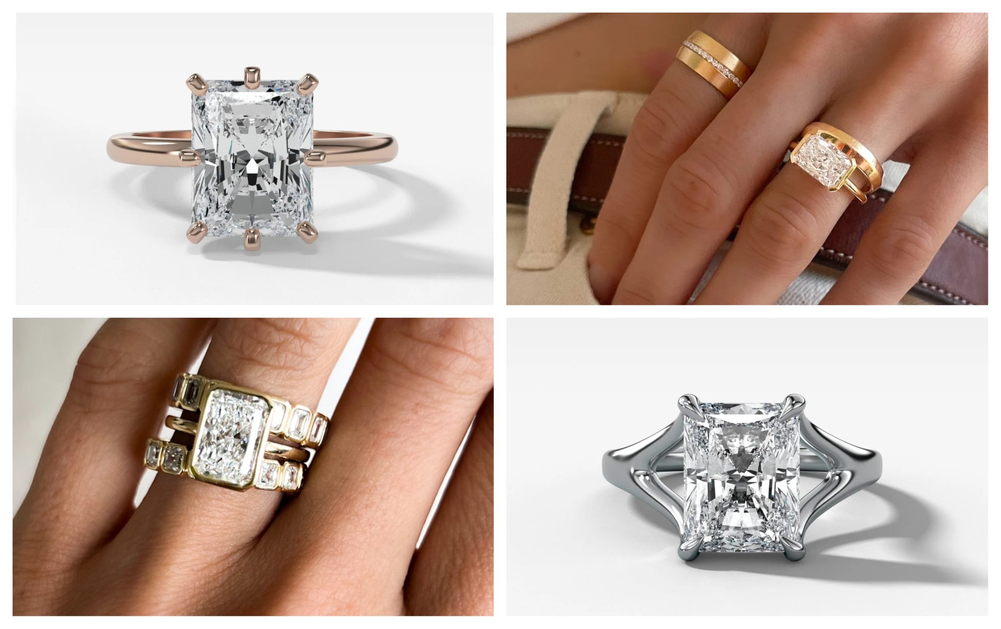 Radiant-cut diamonds pair beautifully with various ring styles and settings. Here are some popular options that bring out the best and really showcase this style: