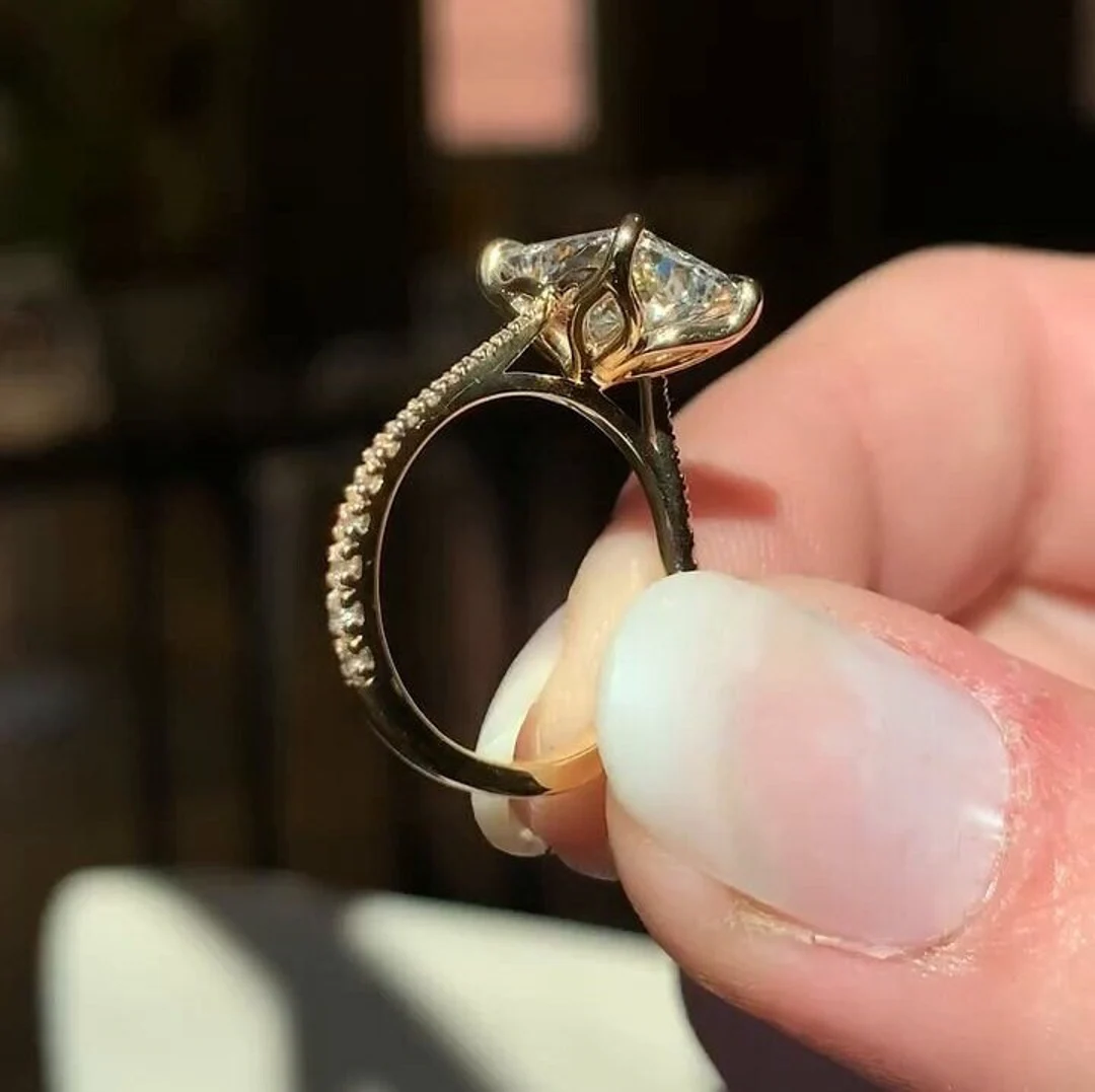 A solitaire setting is a timeless choice that allows the radiant diamond to take center stage with no distractions. This setting highlights the diamond’s brilliance and clean lines, making it an ideal option for those who appreciate minimalism and sophistication. Solitaires often feature a sleek metal band, typically in platinum, white gold, or yellow gold, which enhances the diamond’s sparkle without drawing attention away from its unique cut.