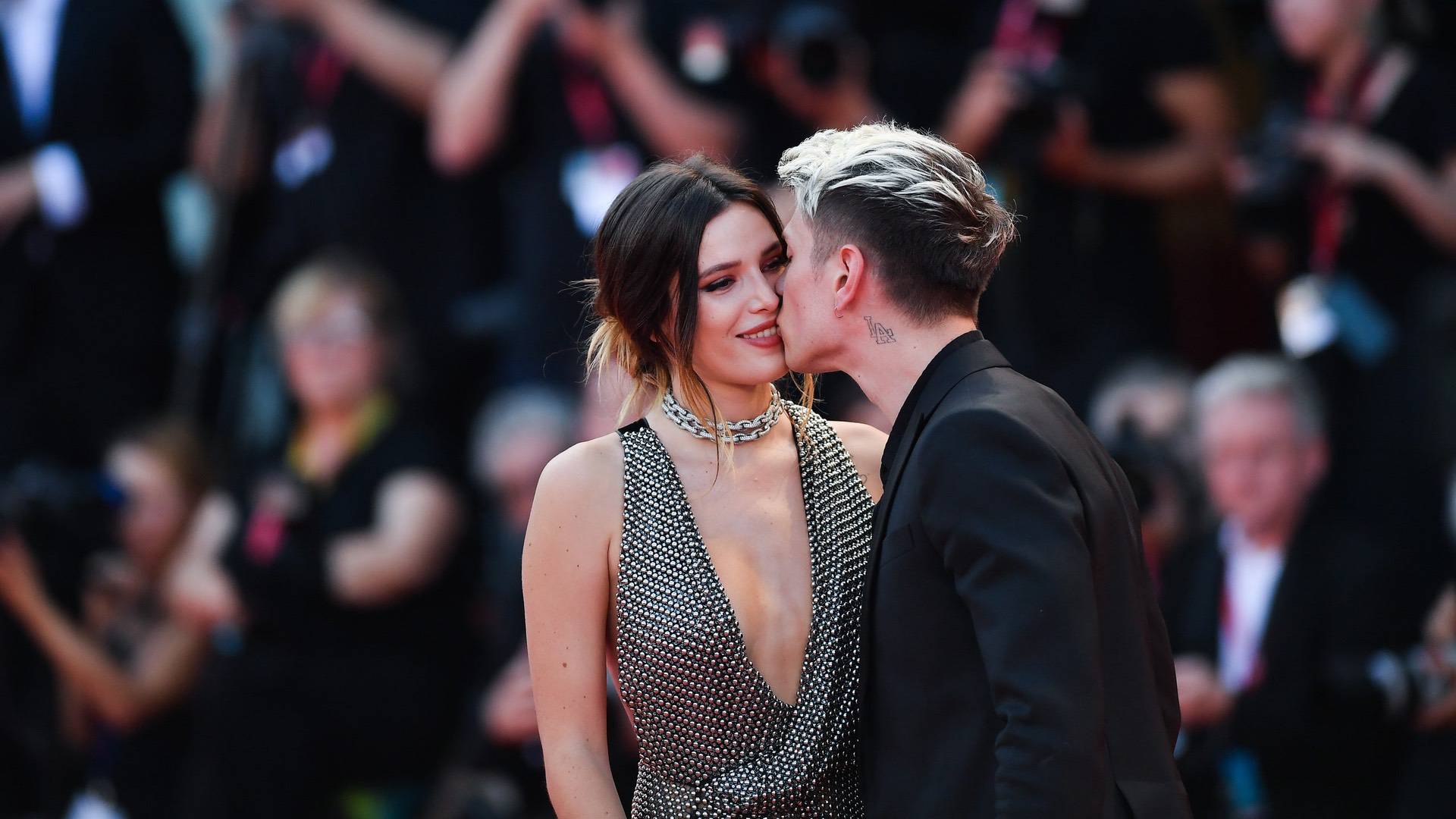 Benjamin Mascolo kissing Bella Thorne on the red carpet