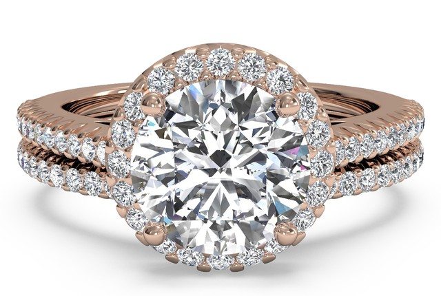 The combination of the classic halo setting and fashion-forward rose gold metal creates an extra dose of sparkle for the modern fashionista. Rose gold engagement rings make a distinctive choice, but are even better when paired with an additional row of matching diamonds for a streamlined look. Shop this set. Solitaire Diamond Braided Engagement Ring With Matching Band