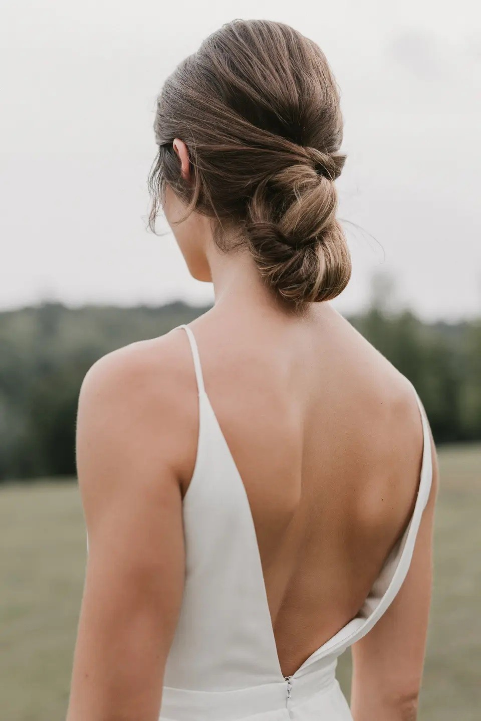 This is a more contemporary version of the classic chignon. We think this stylish bridesmaid hairstyle would be perfect for a minimalist wedding. This bridesmaid hairstyle is elegant and classy.